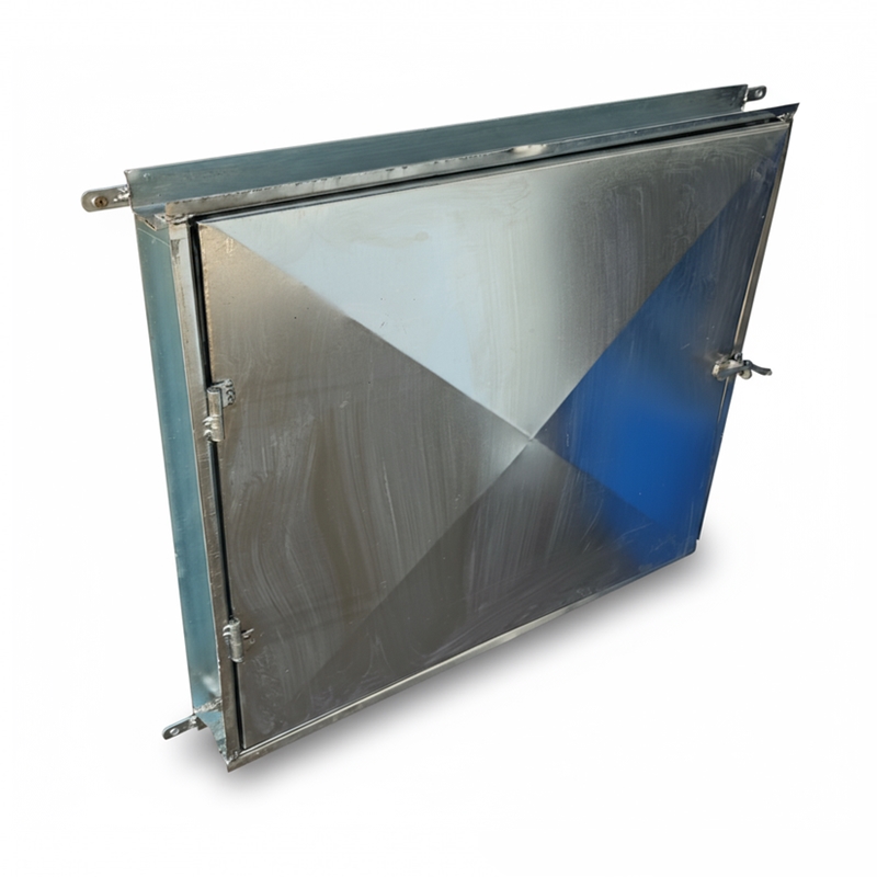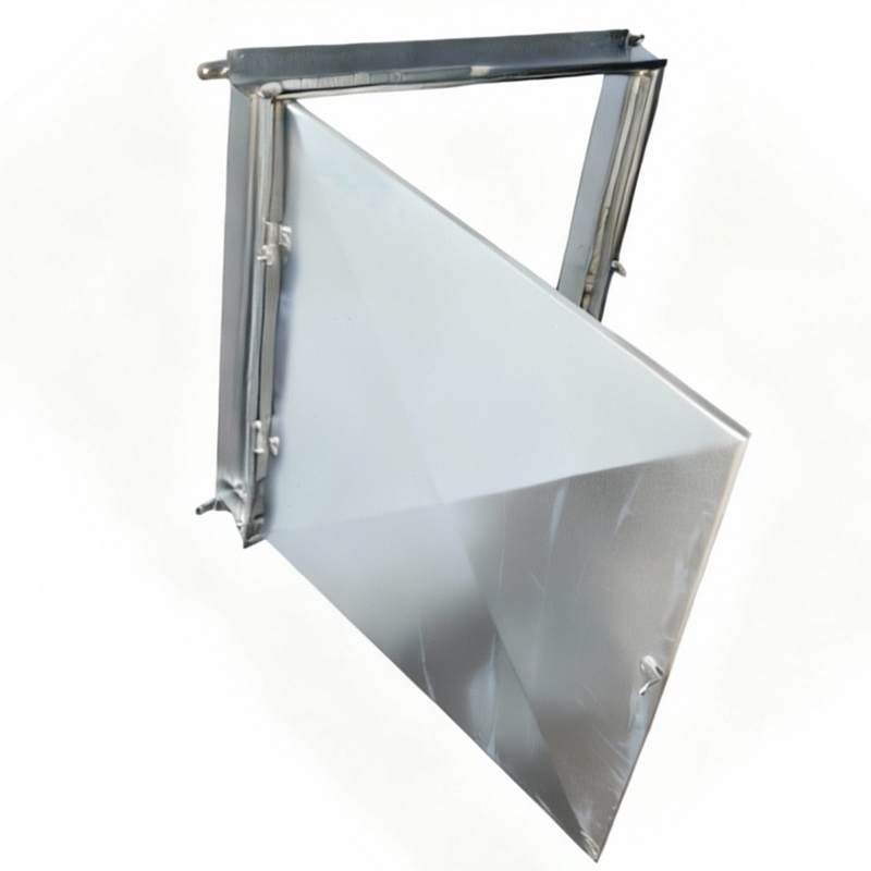O modelo inclui tampa e requadro, oferecendo fechamento seguro e alinhamento perfeito com o piso ou superfície de instalação. O requadro garante encaixe preciso, evitando folgas e movimentos indesejados, aumentando a segurança do alçapão. A tampa é projetada para suportar peso e tráfego moderado, ideal para locais que exigem acesso seguro a dutos, tubulações, casas de máquinas e depósitos.