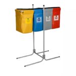 Para completar o conjunto, o sistema de Coleta Seletiva 4V em Lona, com capacidade de 35 litros por compartimento, permite a separação correta dos resíduos (papel, plástico, vidro e metal), promovendo a sustentabilidade e o cuidado com o meio ambiente.