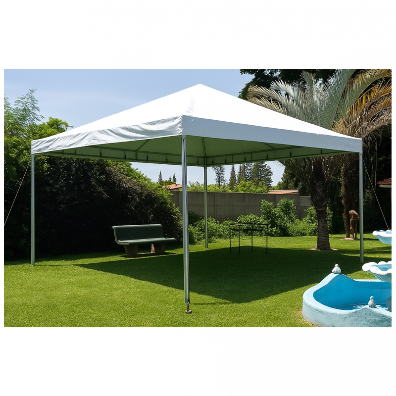 A cobertura da tenda é confeccionada em lona de PVC acoplada a tecido de poliéster, um material conhecido por seu alto grau de resistência à exposição solar, chuvas e ventos. Essa combinação garante impermeabilidade total, além de proteger contra os **raios UV**, evitando o desgaste prematuro e mantendo o aspecto estético por muito mais tempo. A lona também é de fácil higienização, o que torna a manutenção prática e rápida.
